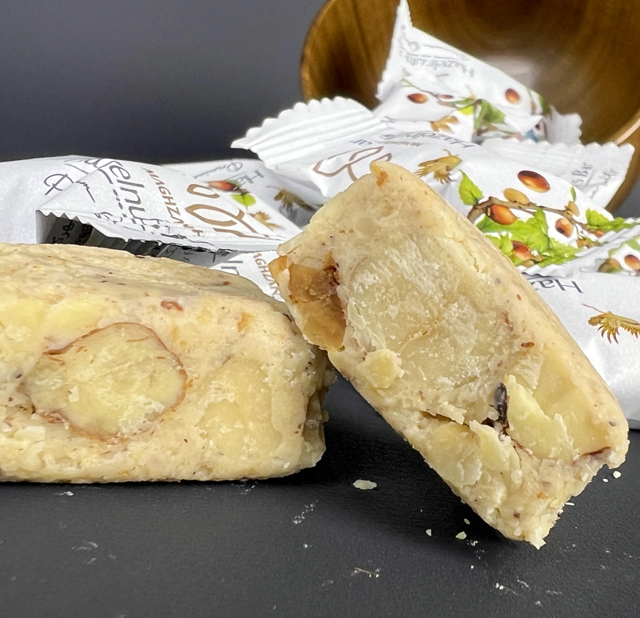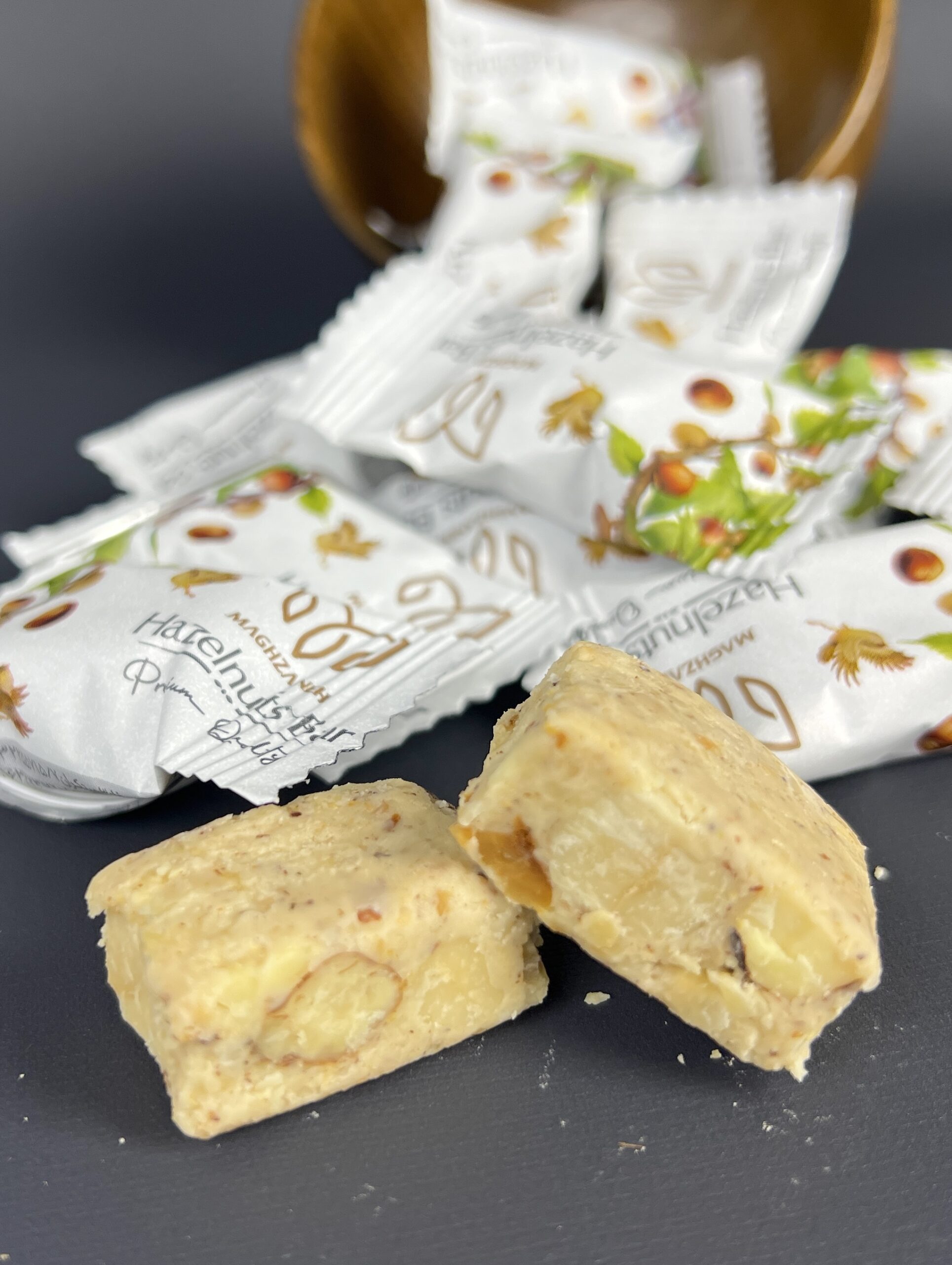 كل كيلو تقريبًا يحتوي على ١٠٠ قطعة. المكونات: بندق، عسل، سمسم.