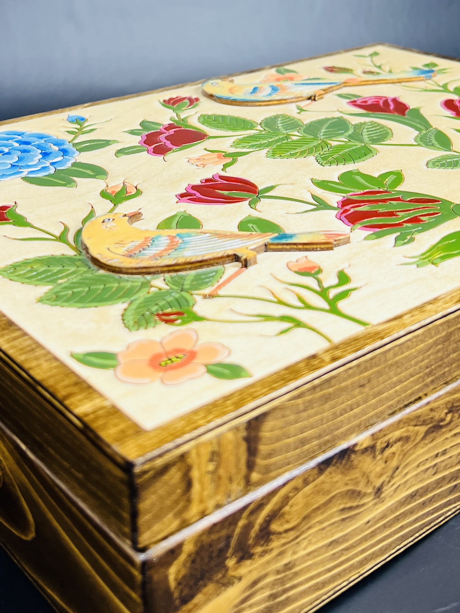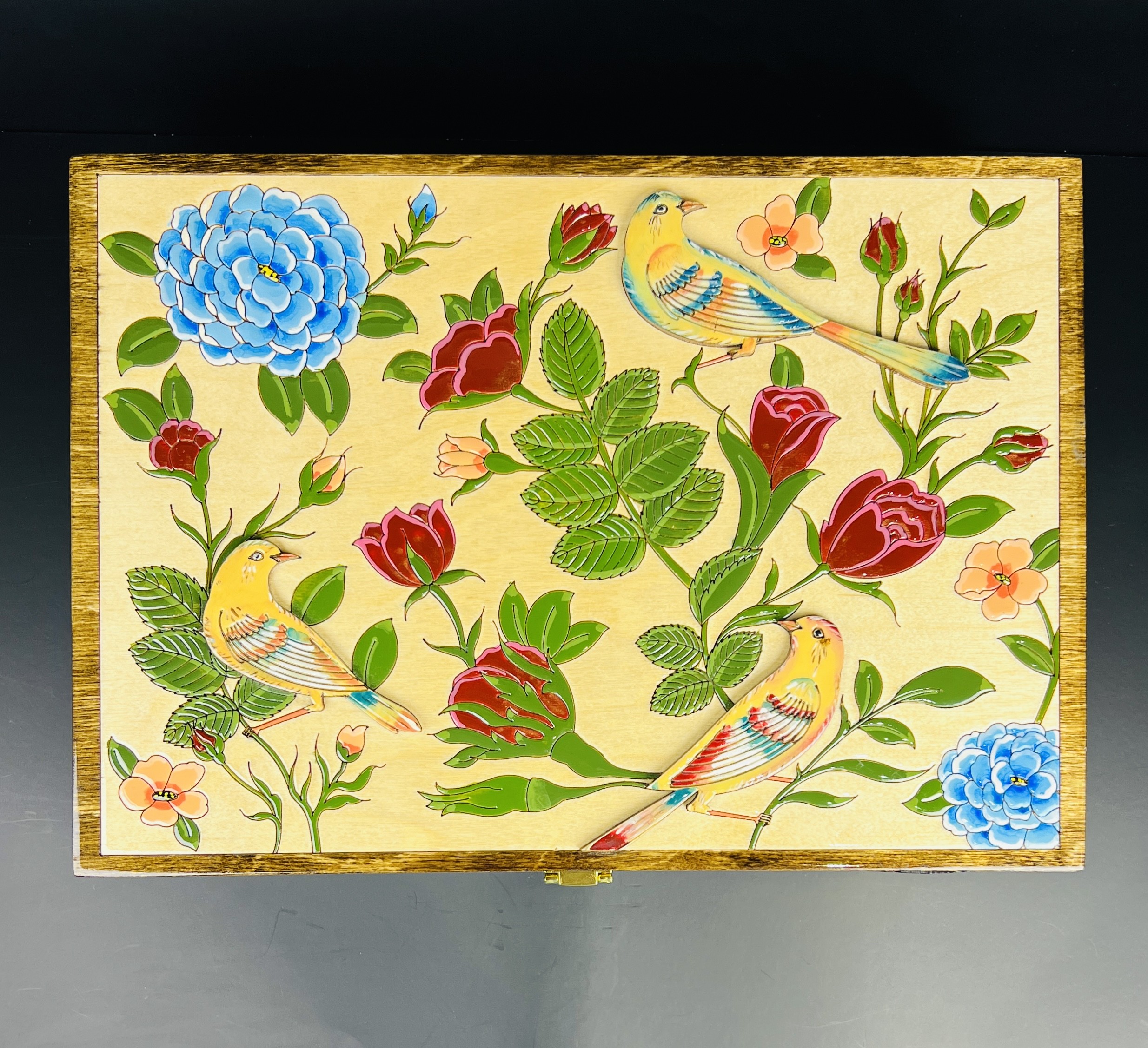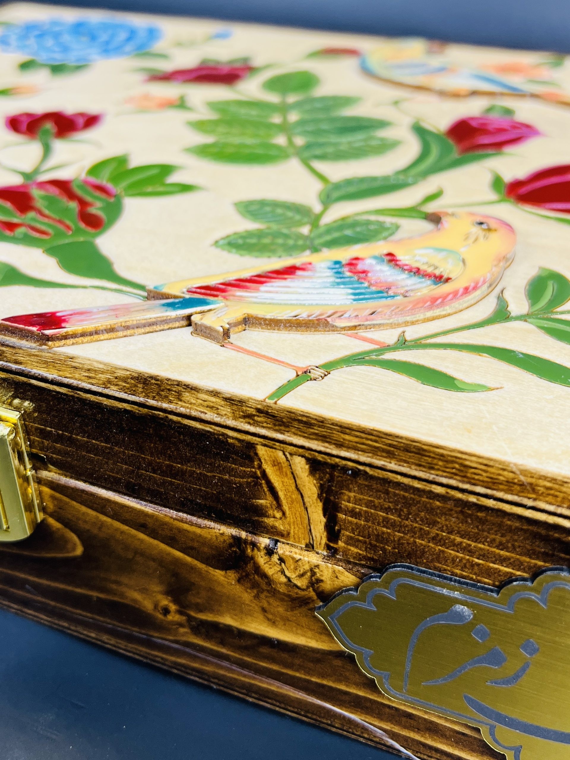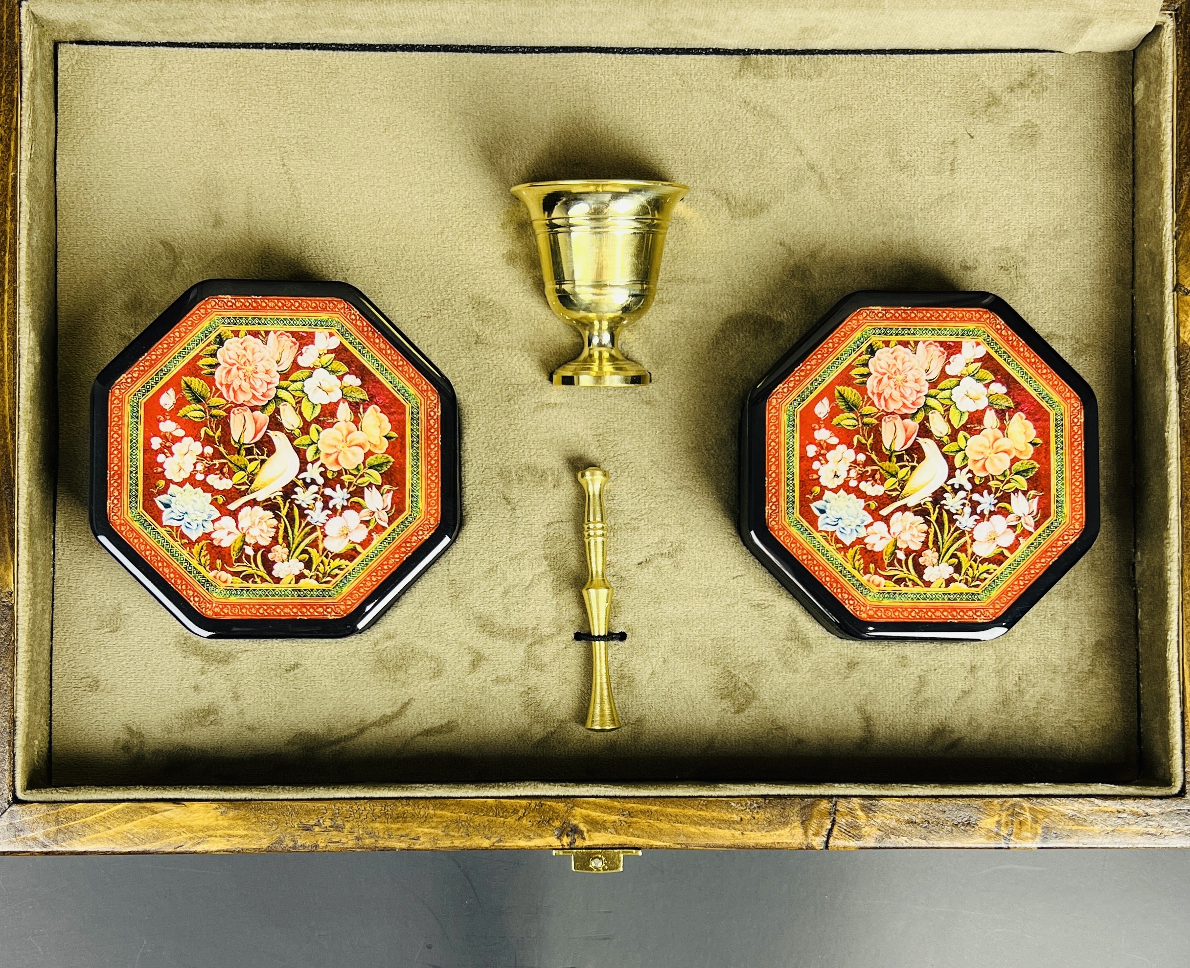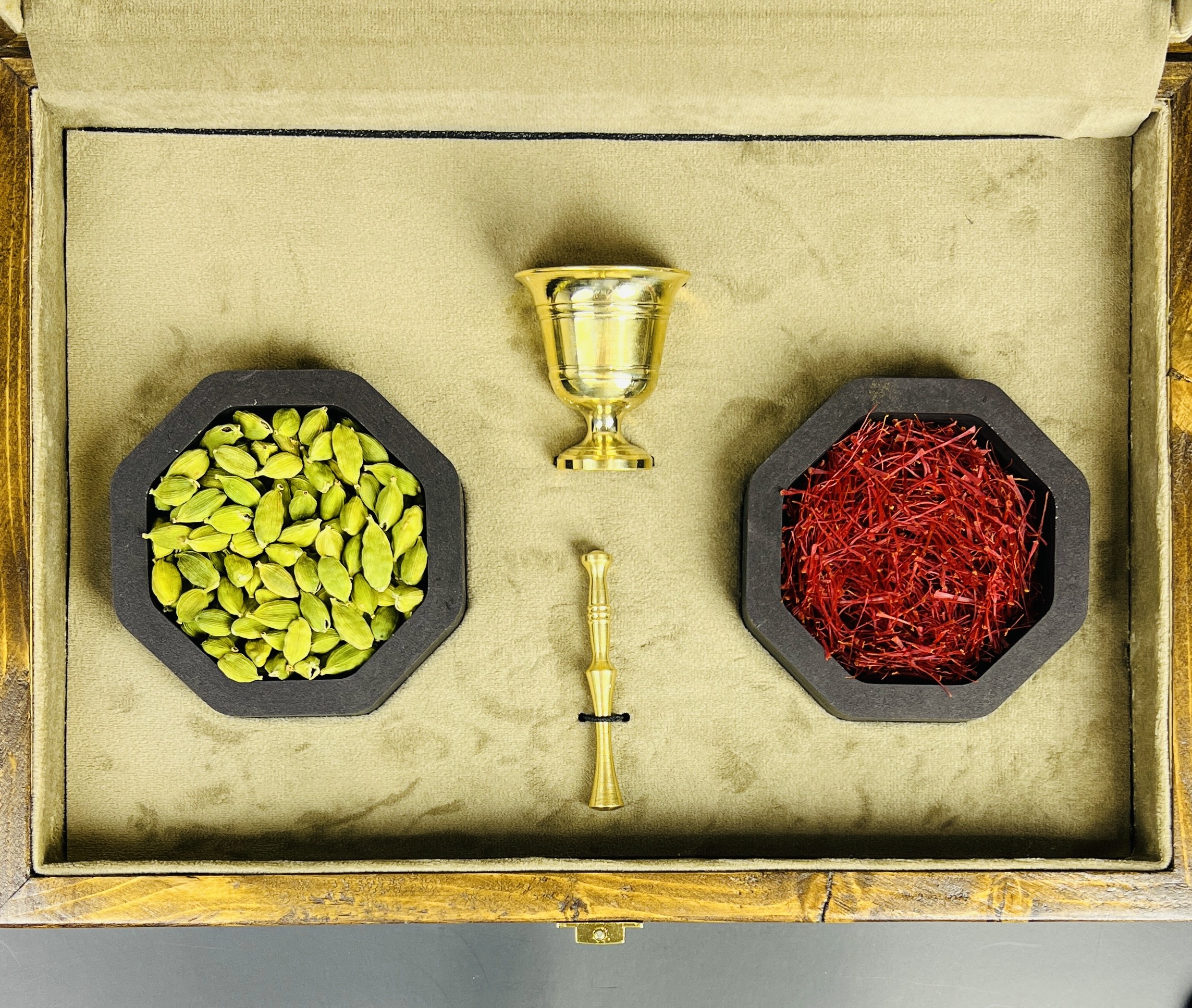 باكس هدية فاخر بتصميم گل وبلبل يضم 8 غرام من الزعفران الإيراني الأصيل “سوبر نگين”، مع هيل فاخر وهاون نحاسي، مرتبة داخل صندوق خشبي فاخر بتصميم تراثي جذاب. خيار مميز وقيّم لتقديمه كهدية للأحبة.